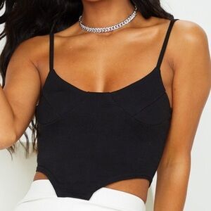 PrettyLittleThing Women 4 Black Jersey Y2K Square Hem Crop Cami Tank Top NWT