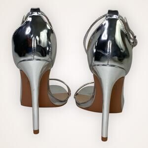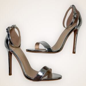 PrettyLittleThing Women’s 6 Silver Open Toe Strappy High Heels