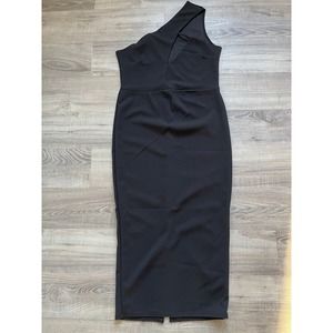PrettyLittleThing Women's Black One Shoulder Asymmetric Neck Midi Dress - US 8