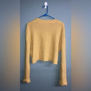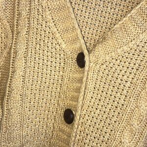 Chic cable knit cardigan. Soft cream color. Features button front. Perfect for layering.