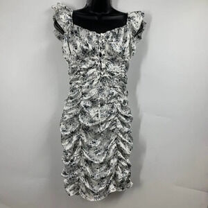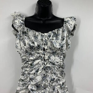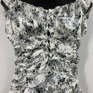 PrettyLittleThing Women's Floral Satin Ruched Bardot Bodycon Dress Size 6 NWT