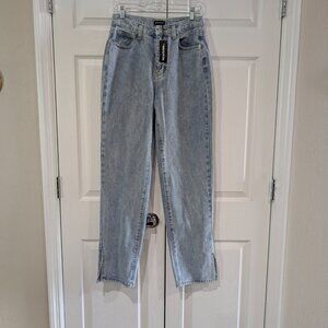 PrettyLittleThing Women's Light Blue Wash Split Hem Jeans US 4 NWT