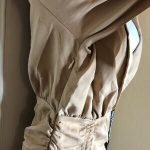 PrettyLittleThing Women's Ruched Deep Plunge Blazer Dress Beige NEW ~ Size 4