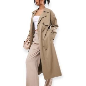 PrettyLittleThing Women’s Us 4 Light Khaki Button Through Oversized Trench Coat