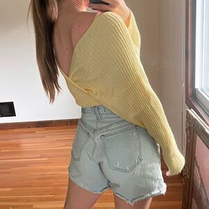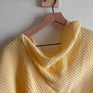 PrettyLittleThing Asymmetrical Crop Sweater in Butter Yellow. In good condition. No holes, rips, or stains. Ours is a smoke free home.