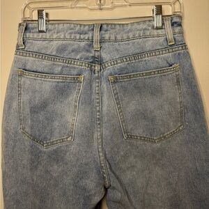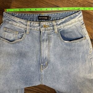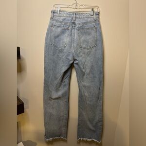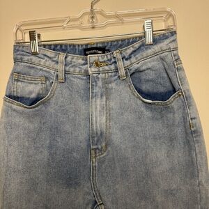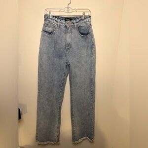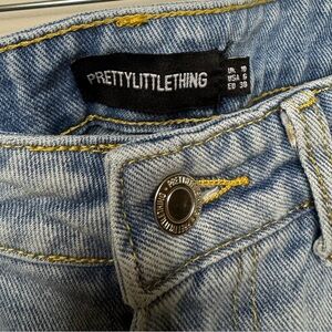 PrettyLittleThing light blue wash long leg jeans with raw hem- size 6