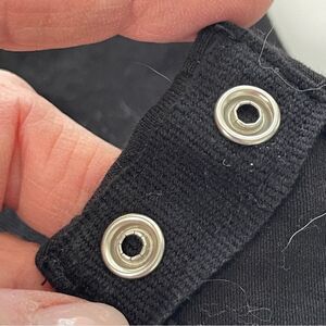Double snaps at crotch. Black knit fabric.