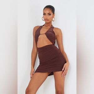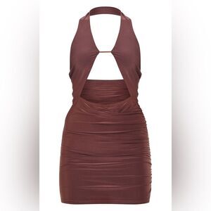 PrettyLittleThing Chocolate Halterneck Bust Slinky Detail Mini Dress Size 4