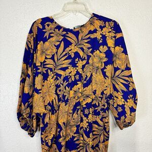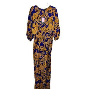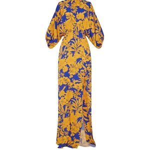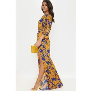 PrettyLittleThing Cobalt Tropical Print Batwing Split Leg Maxi Dress Sz 10 NWOT