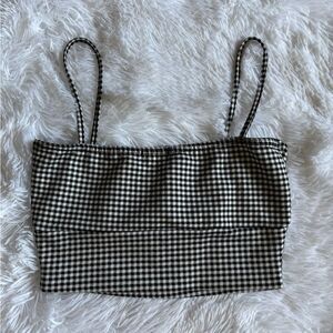 PrettyLittleThing Crop Top Tie Front Black White Checkered Womens Size 6