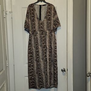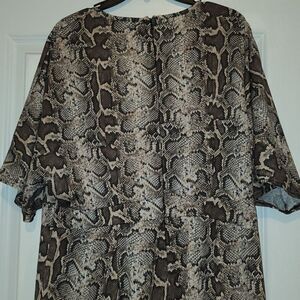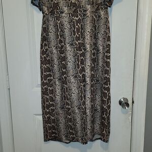 lightweight snakeprint zipper back wideleg jumpsuit. perfect for vacay or everyday wear! 40 " armpit to armpit 38 " waist 21 inseam 53" length