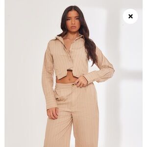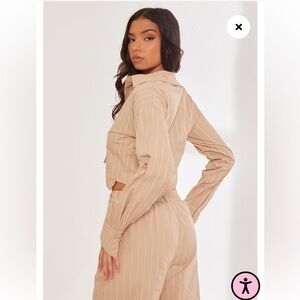 PrettyLittleThing•Stone Poplin Pinstripe Pocket Detail Cropped Shirt NWT 4
