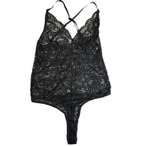 PrettyLittleThings Black Sheer Lace Cross Back Bodysuit Size 4