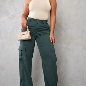 PrettyLittleThings Shape Pine Green Cargo Wideleg Pants