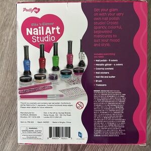 PrettyMe Glitz 'n Glamour Nail Art Studio with vibrant nail polish colors and glitter. Includes stickers for creative designs. Ages 7+, non toxic. New and never used.