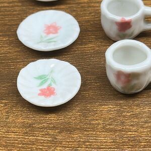 Pretty Port LTD Mini Pink Rose Porcelain China 14 Piece Doll Tea Set Barbie Size