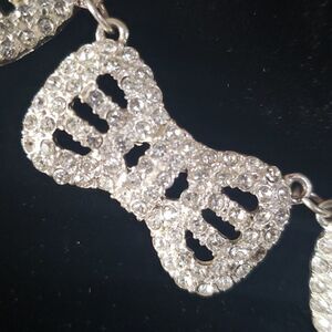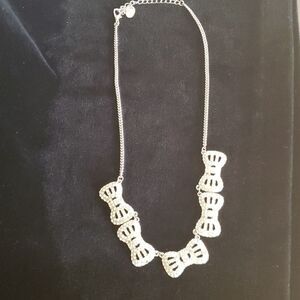 Pretty Sparkly Silvertone 5 Bow Necklace