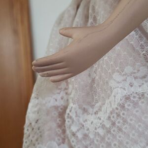Very good vintage condition - this doll was displayed on my daughter's dresser for several years, but not played with - she does have a light black scratch mark along her left arm, which can't be seen from the front (see pictures)