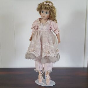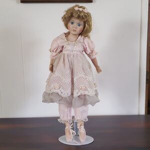 Pretty Vintage 17" Porcelain Doll with Metal Stand