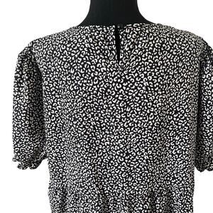 Prettygarden Flutter Sleeve Animal Print Spring Dress Black White XL Cottagecore
