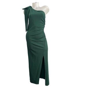 Prettygarden Green Dress One-Shoulder Maxi Bow & Ruched Side Detail Size Small
