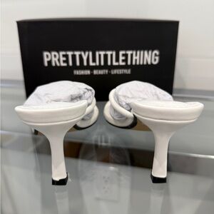 Prettylittle Thing Round Toe Thong Mid Heel White Mules NEW (sz 6)