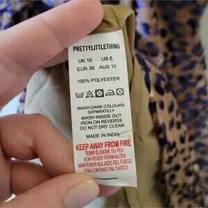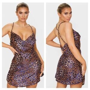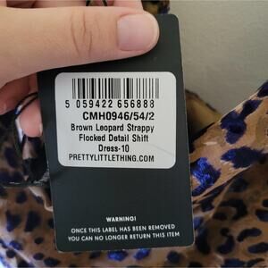 Prettylittlething Brown Leopard Strappy Flocked Detail Shift Dress
