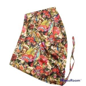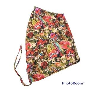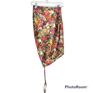 Prettylittlething Multi Tattoo Print Satin Ruched Side Mini Skirt size 2