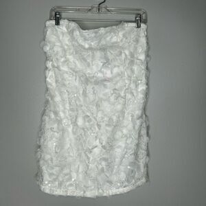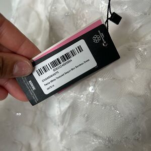 Prettylittlething PETITE WHITE TEXTURED SEQUIN MINI BANDEAU DRESS NWT