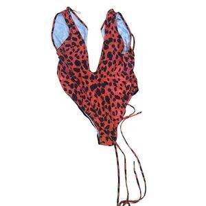 Prettylittlething Red Leopard Cut Out Wrap Around Swimsuit One Piece