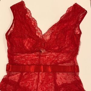 Prettylittlething sexy Red lace bodycon body suit size 6