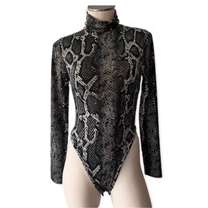 Prettylittlething Snake Print Sequin Bodysuit Size 4