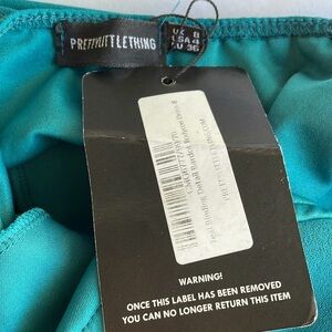 Prettylittlething Teal Binding Detail Bardot Bodycon Dress