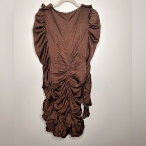 Prettylittlething chocolate frill shoulder twist bust ruched bodycon dress NWT