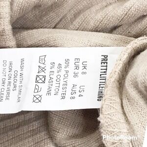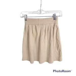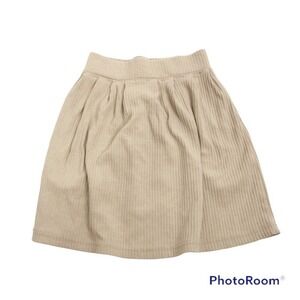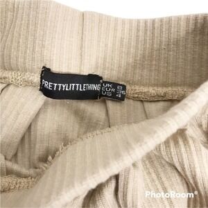 Pretty Little Thing ribbed aline skirt. Color is a light tan, beige. Ribbed textured throughout. Thick ribbed elastic waistband for best fit. Aline flare.