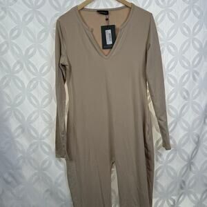 Prettylittlethings Stone Seamless Cotton Elastane V Neck Jumpsuit Size 8 NWT