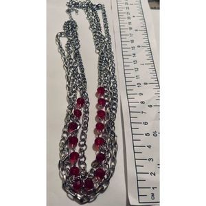Adorable red sapphire and silver layered necklace. Very pretty and vibrant vintage piece. Dresses up any outfit. NWT. #sapphirenecklace, #rednecklace, #redsapphirenecklace, #vintagenecklace, #vintagejewelry