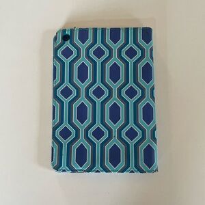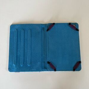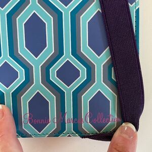 Pre-used Purple and Teal Bonnie Marcus Collection Mini iPad or Kindle Case. It measures 6 inches in length and 8 inches in height.