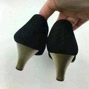 Prevata Womens Heels Size 6.5 Black Italian Suede Gold Funky Heels Vintage Pumps