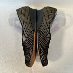 Prevata Mesh Womens 9 Shoes Black Gold Slip On Made in Italy 1-1/4 Platform Heel