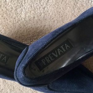 Prevata Navy suede pumps.