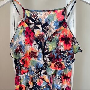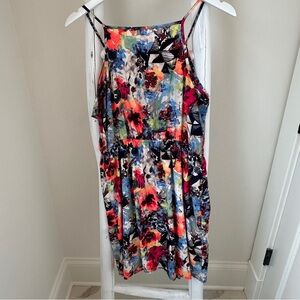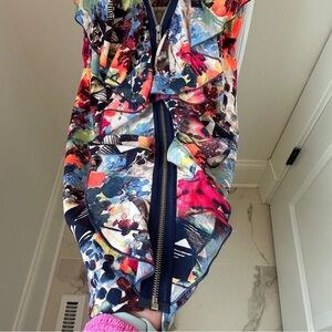 Prevett Colorful Abstract Print Front Zipper Sun Dress SZ Large