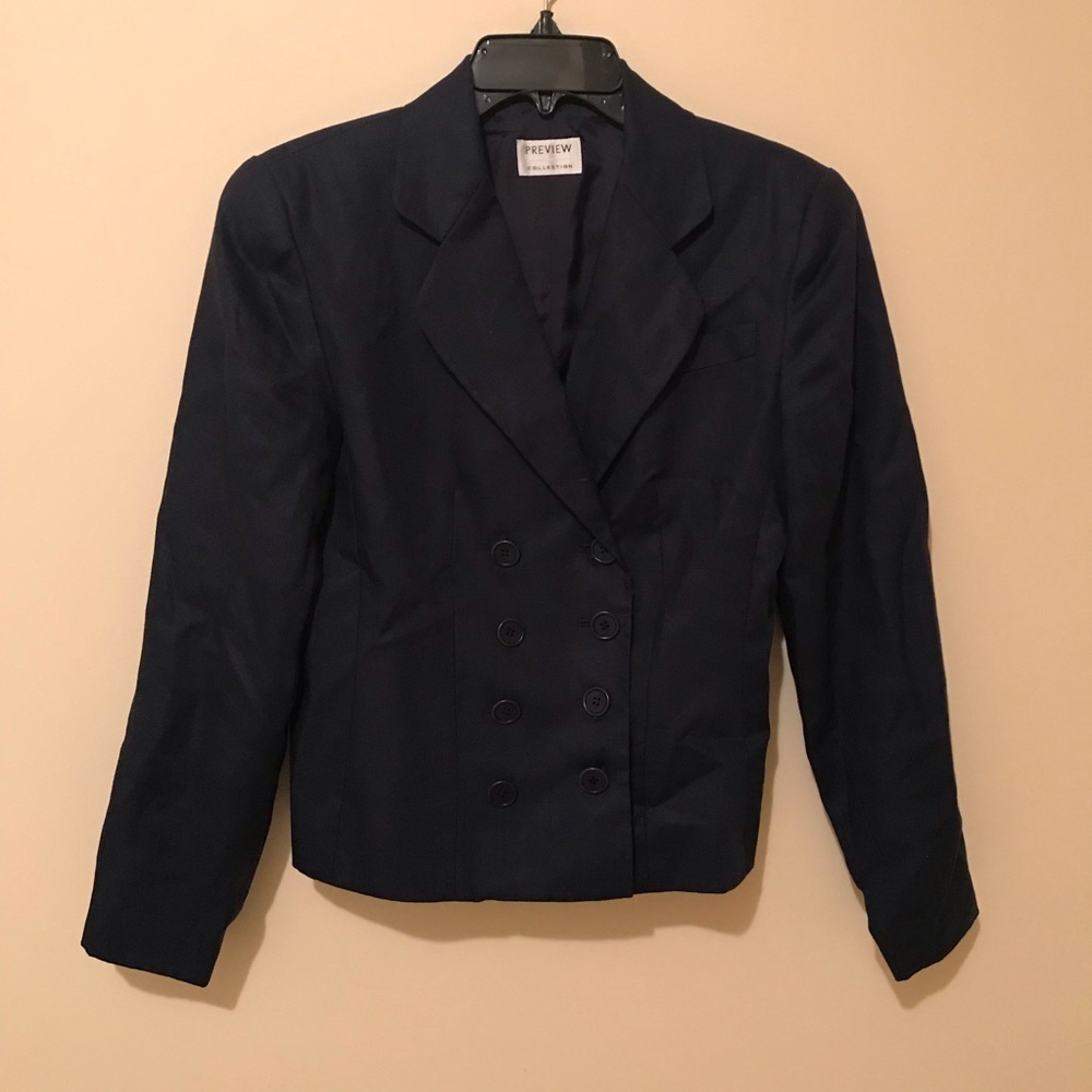 Achieve modern sophistication with Linen Double-Breasted Cropped Blazer. Slim fit; long sleeves. Three button front closure. Cropped straight hemline sitting above the hip. 100% Natural Linen.