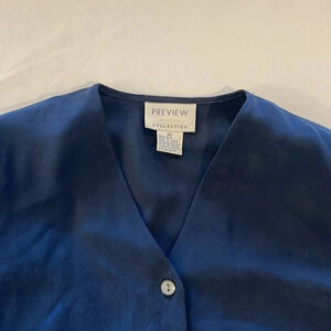 Preview Collection Vintage button down 100% silk top shoulder pads XS EUC
