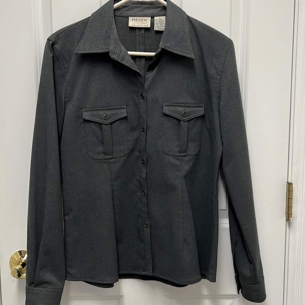 Preview Collection gray wrinkle-free button down top with two front pockets