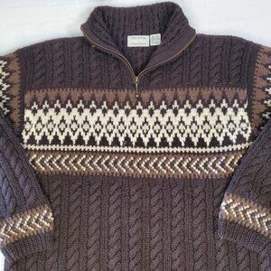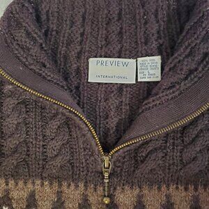 Preview International Brown Cable Knit Sweater 100% Wool Size Large