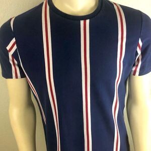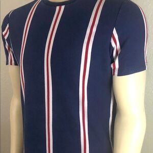 This sharp t-shirt in classic red, white and blue, will always be in fashion! 100% cotton, men’s medium.