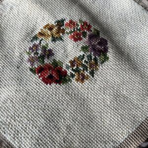 Keywords: finished, completed fiber arts needlework, classic needlepoint, needlecraft, cottage chic, country chic grandma