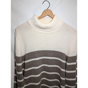 Pria Women's Xl Knit Turtleneck Sweater Striped Cream Mocha Neutral Classic. Sweater is in excellent condition.