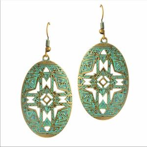 Bohemian Geometric hollow Bronze Drop Earrings Vintage